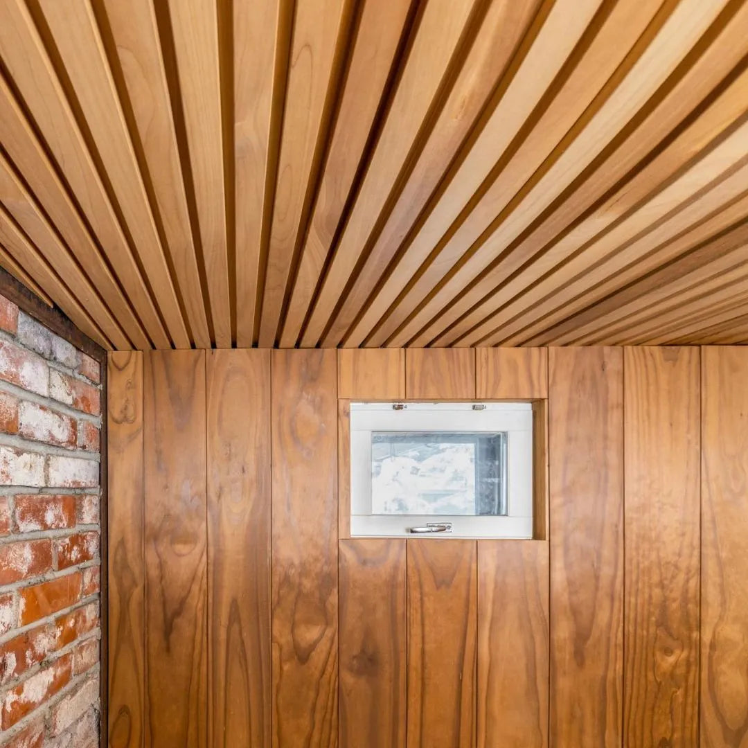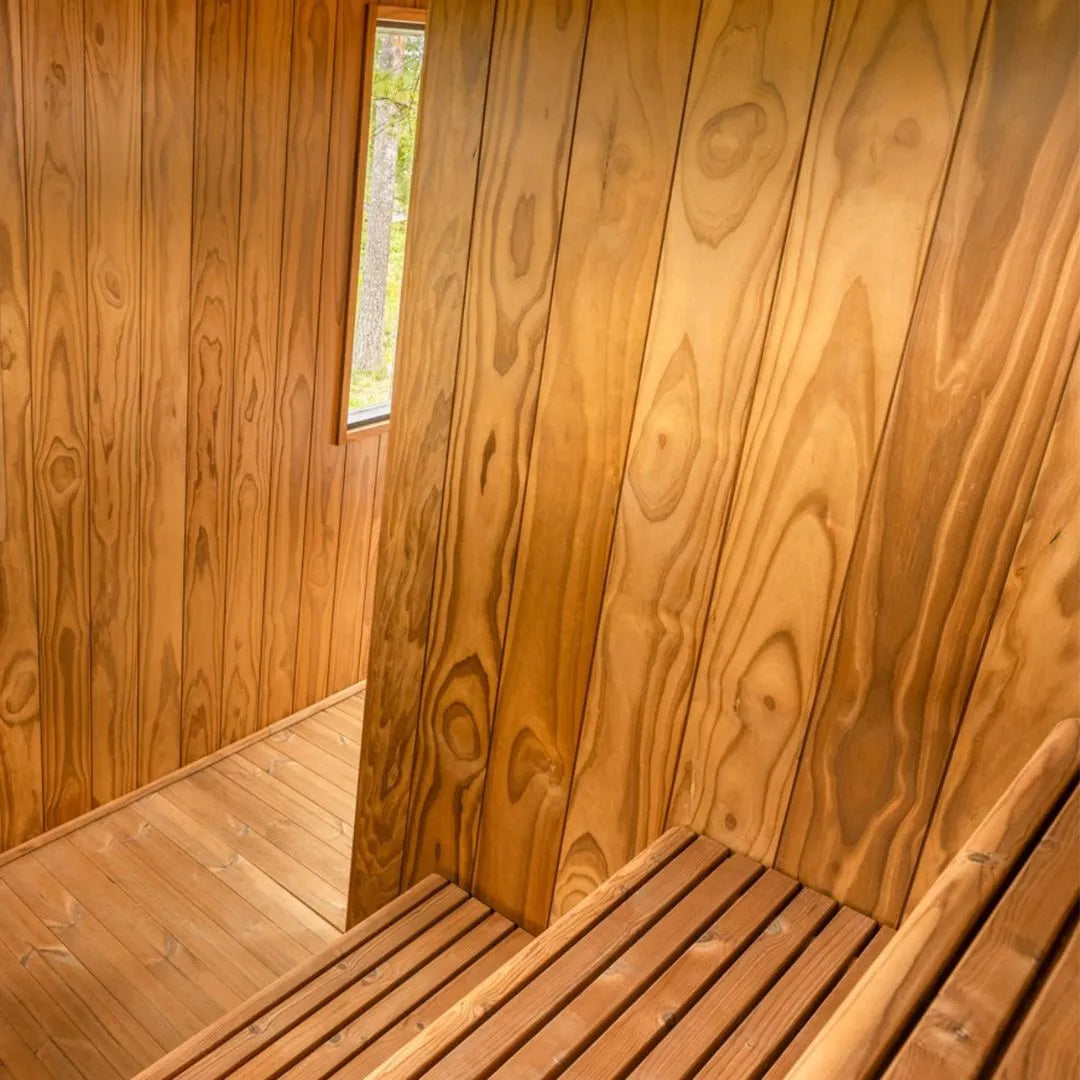 Bastupanel av värmebehandlad radiafuru, känd för sin höga kvalitet, passar för alla inomhusutrymmen. Dess levande, kvistfria yta passar både modern och traditionell inredning.