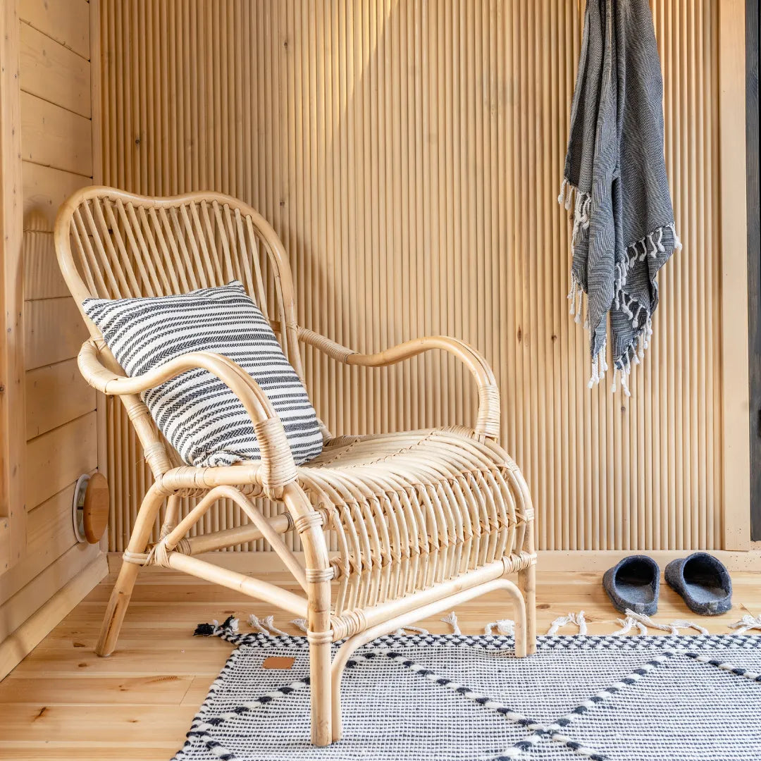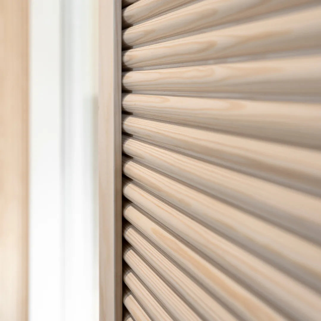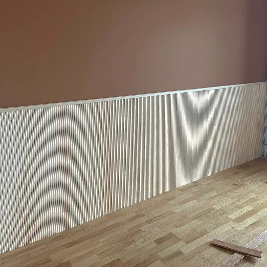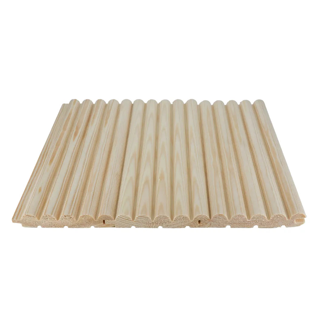 Träpanel som är lämplig för användning i både torra och fuktiga utrymmen. Med en fingerpanel bildar du ett tilltalande och elegant uttryck. De runda ribborna ger interiören en unik form.