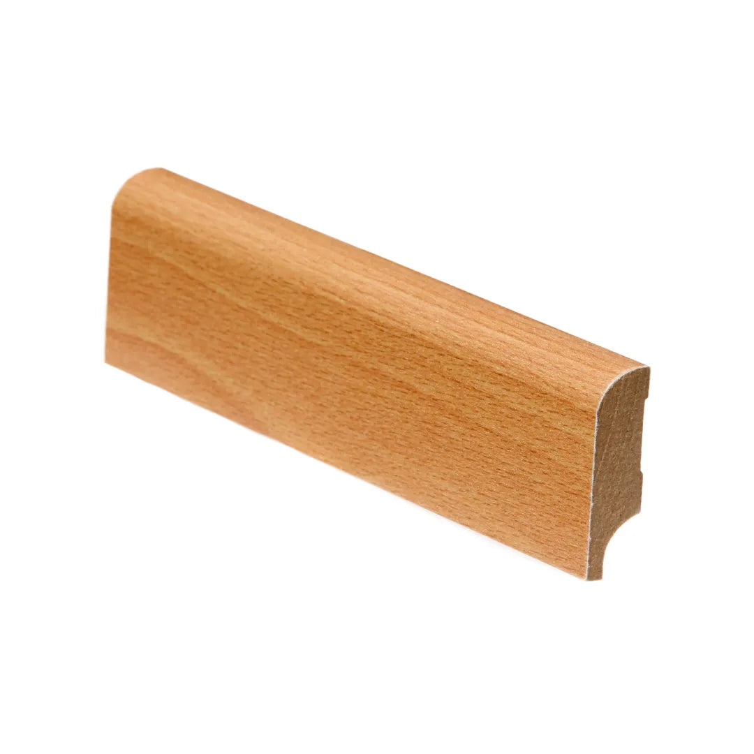 Den bokfärgade MDF-golvlisten är belagd med slitstark melamin, vilket säkerställer en enhetlig produkt utan färgskillnader.