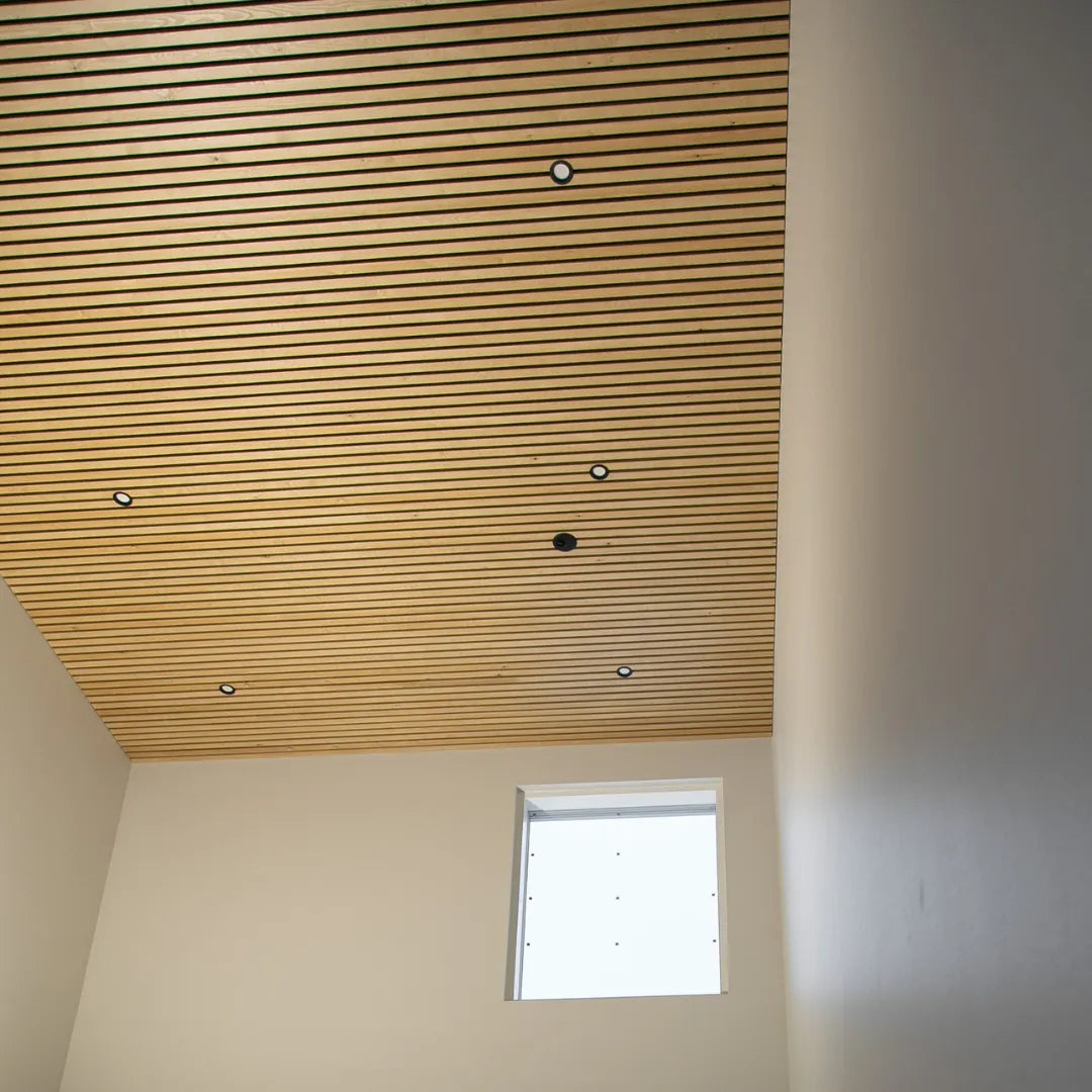 Med regeln skapar du ett tilltalande och levande uttryck och förbättrar akustiken i rummet. Den trärena regeln behandlas på många olika sätt för att få fram träets egen karaktär och uttryck.