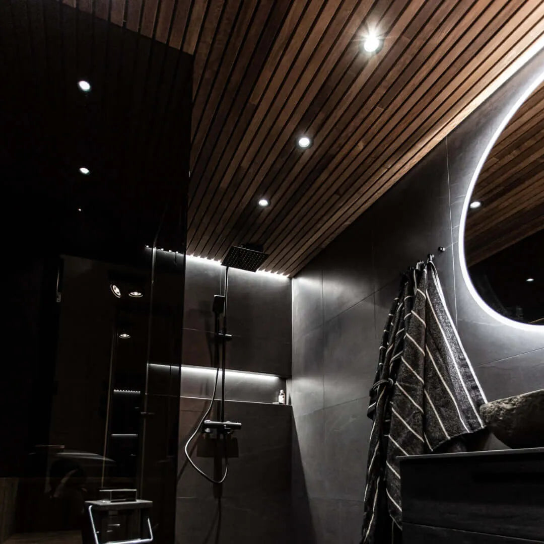 Tak-/väggläkt av värmebehandlad asp är ett enkelt och hållbart val för både torra och fuktiga utrymmen i hemmet.