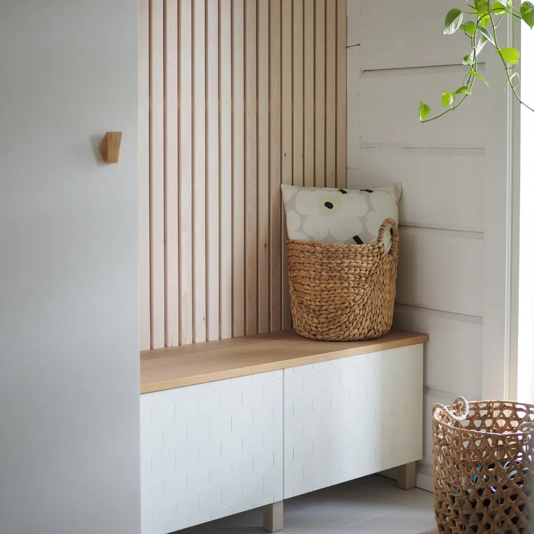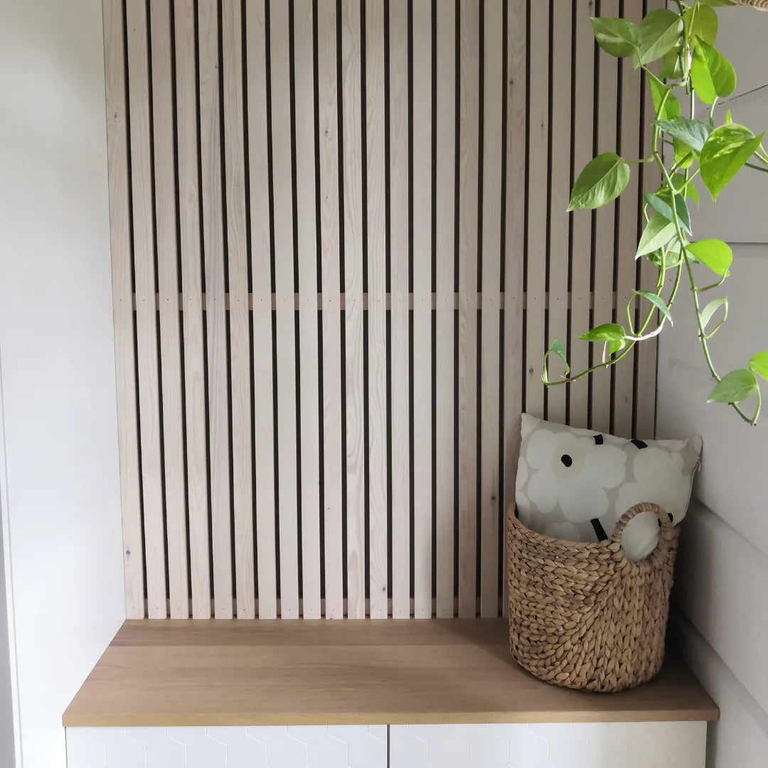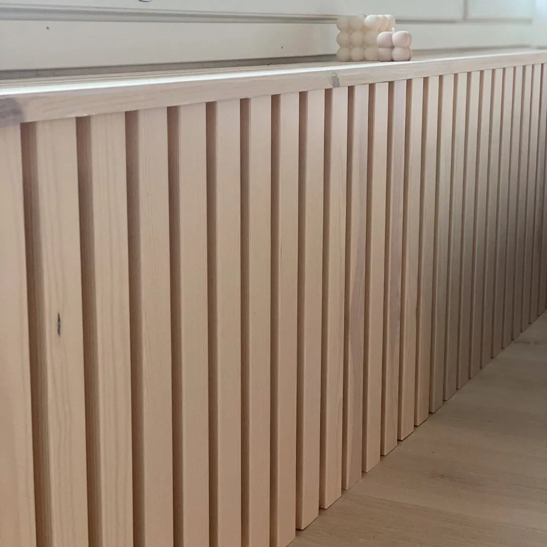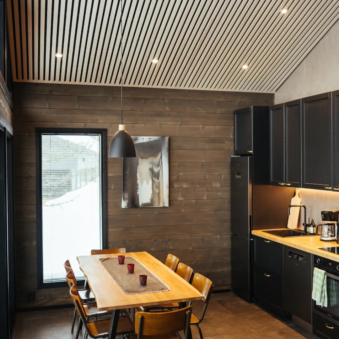 Tak-/väggregel av skandinavisk furu är ett elegant val för inredning av hemmet.