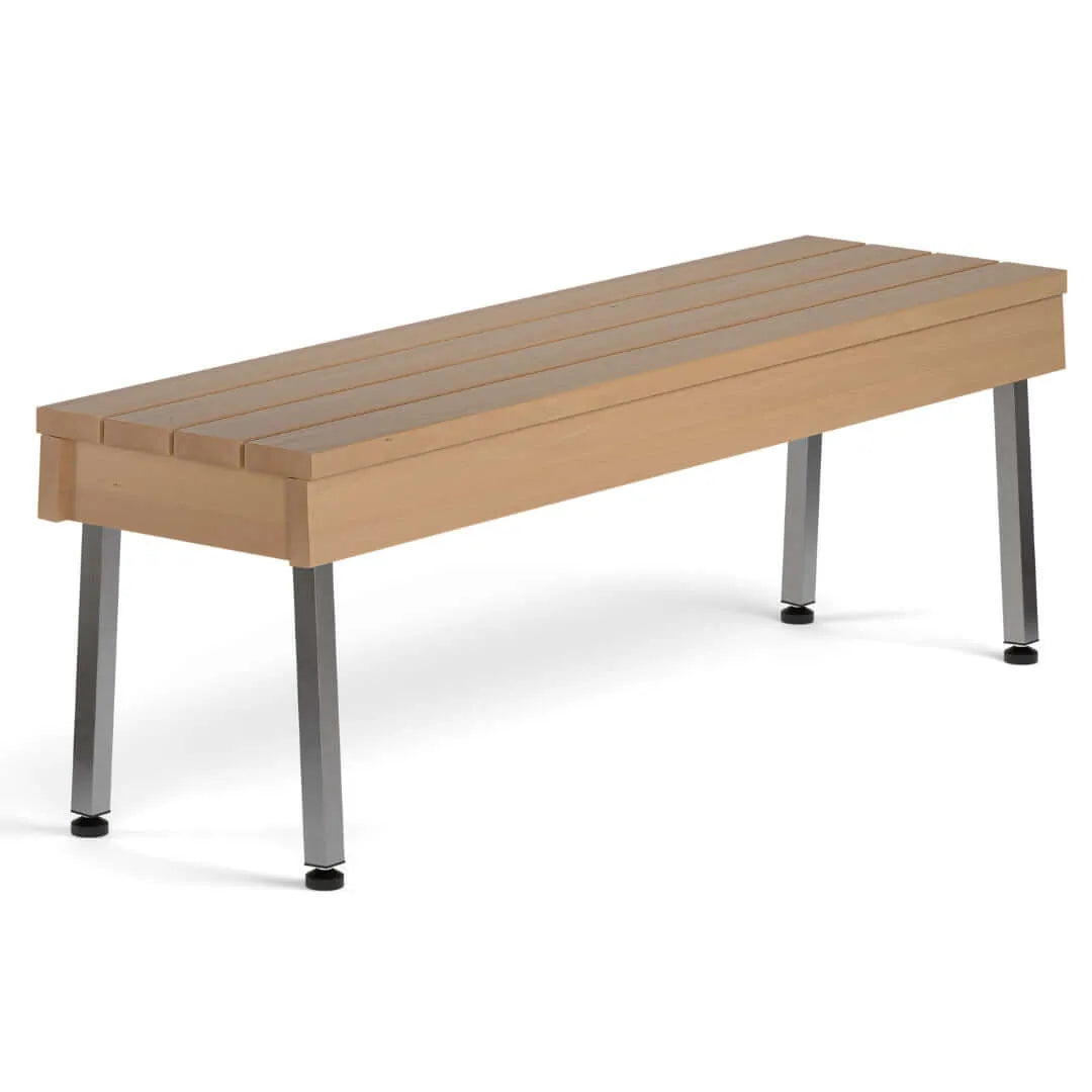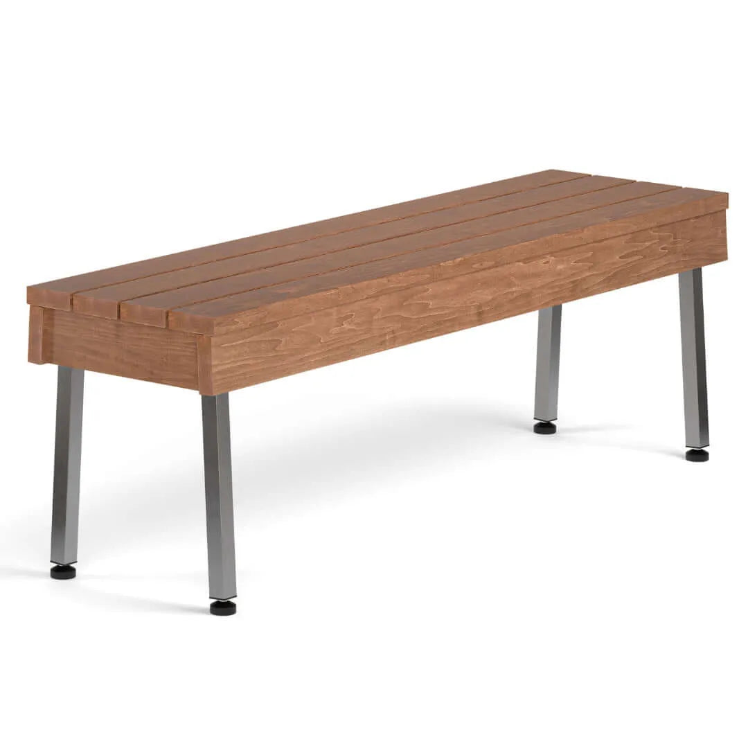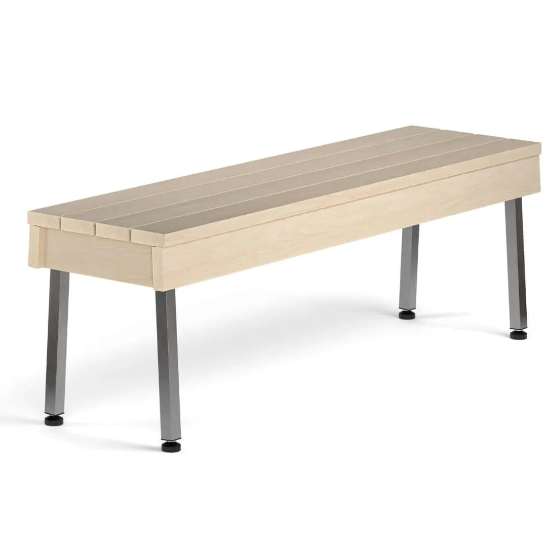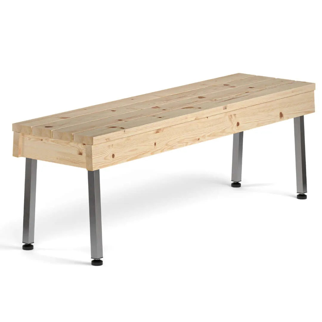 Bänkens ben i rostfritt stål säkerställer stabilitet och hållbarhet, vilket gör den till ett idealiskt val för en mängd olika användningsområden. Du kan välja mellan flera olika längder och ytmaterial, inklusive ett lackerat alternativ.