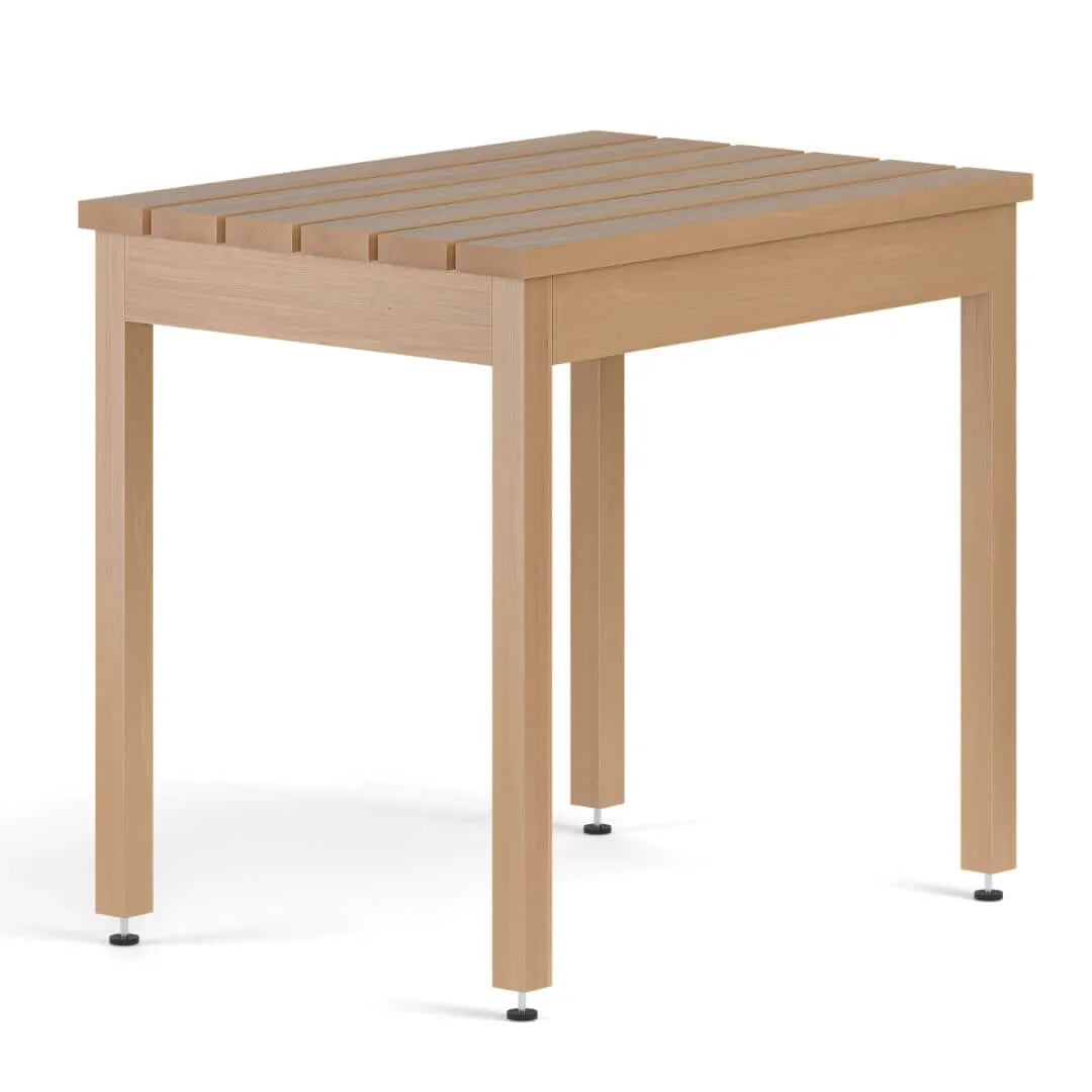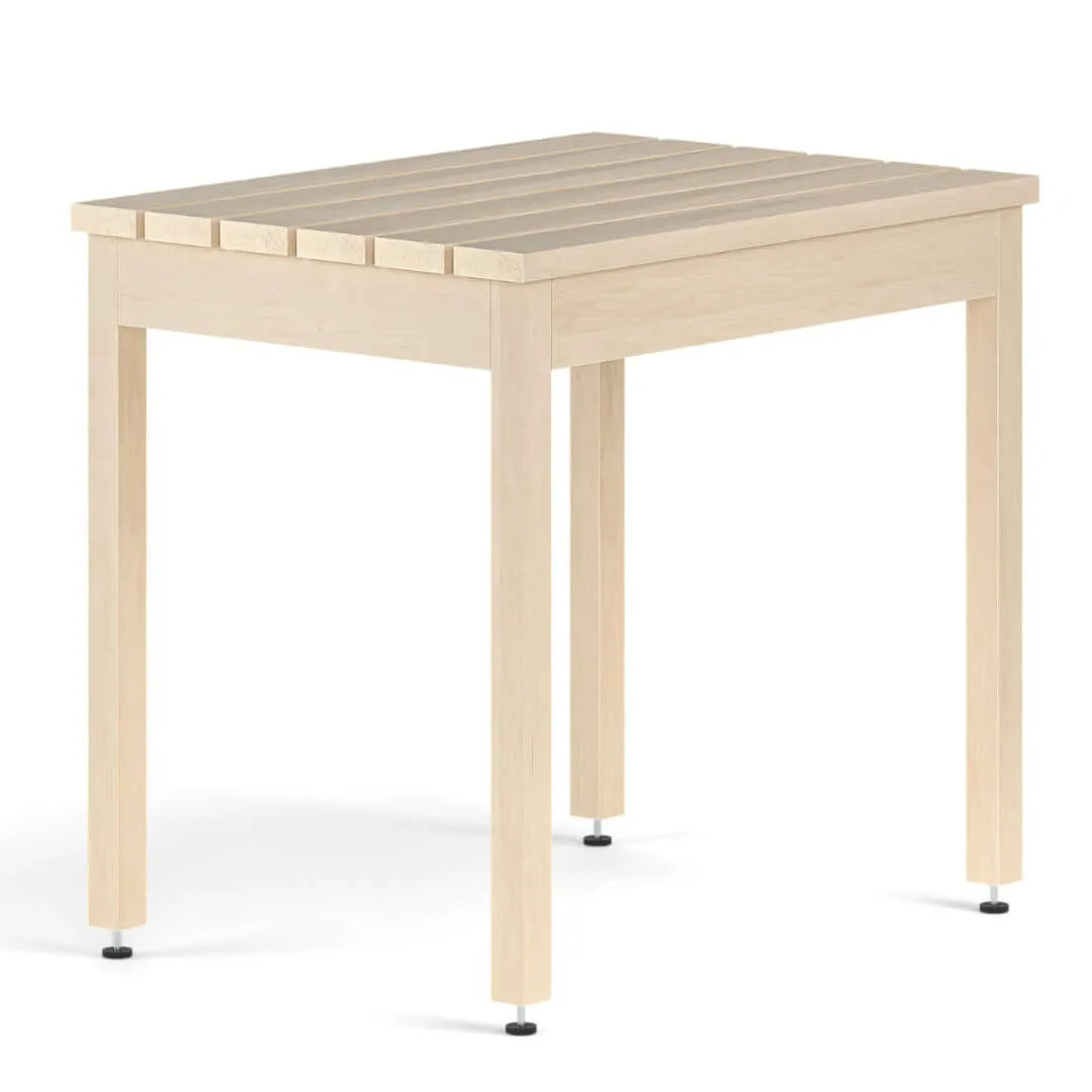 Ett snyggt och hållbart bord med träram för bastuns omklädningsrum!