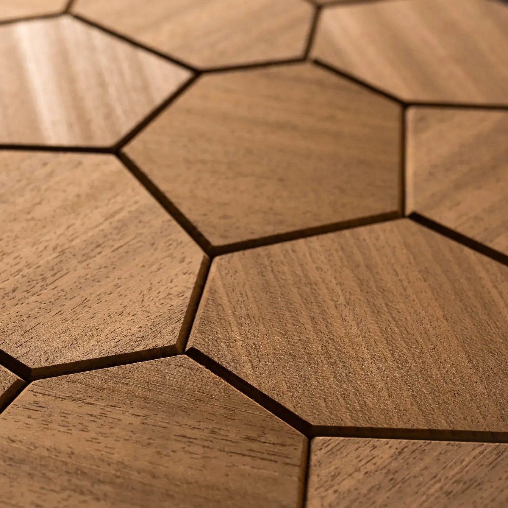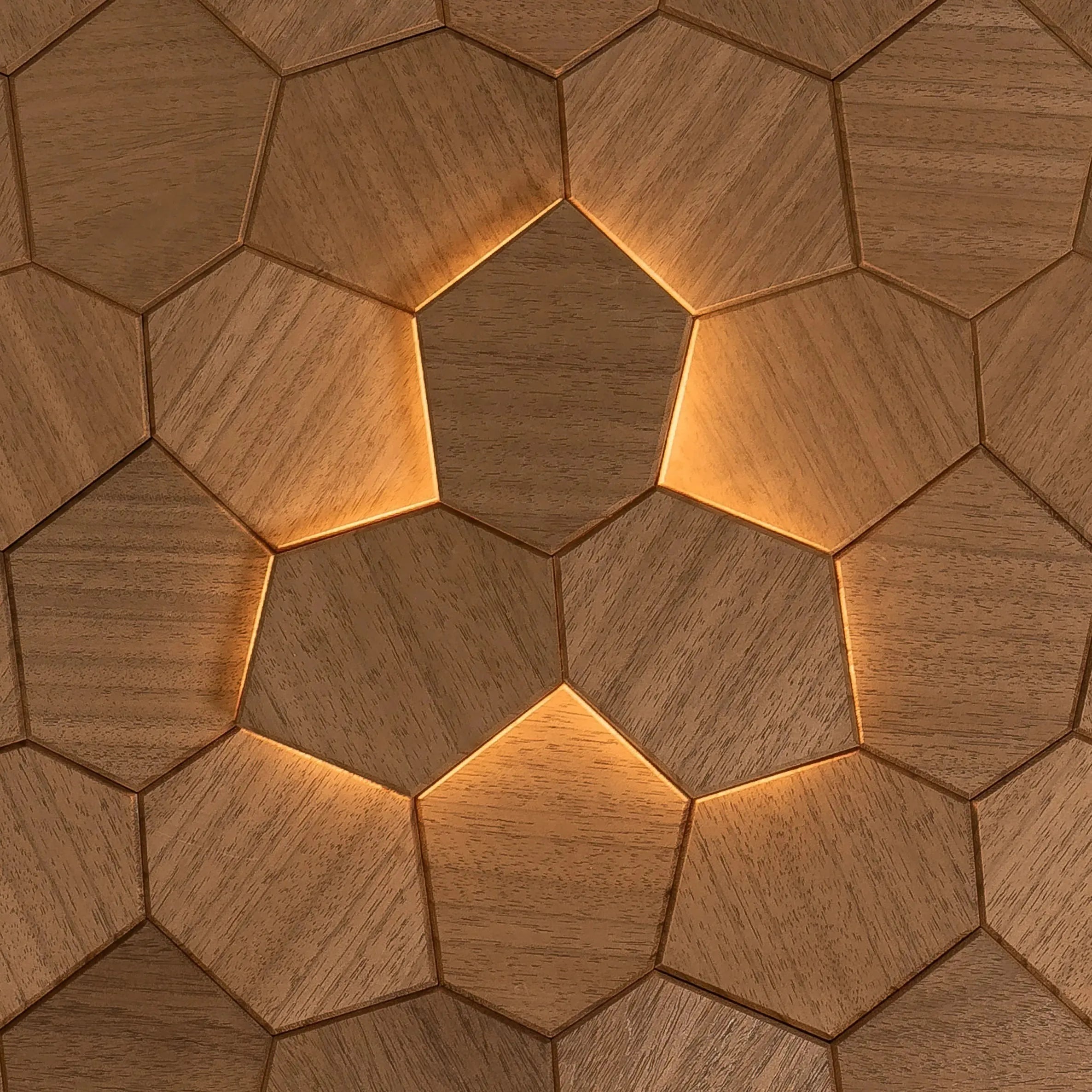 Royal väggpaneler är högkvalitativa inredningspaneler tillverkade av DecNord. De är tillverkade av premium Abachi-trä och är speciellt utformade för att förbättra estetiken hos bastur och andra inomhusutrymmen. Panelerna finns i fyra olika varianter, var och en med sina egna visuella egenskaper och speciella karaktär. Panelerna är formade som oregelbundna hexagoner, vilket ger en personlig och konstnärlig touch till interiören.