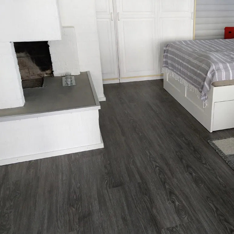 Mörk Finnö SPC vinylgolv erbjuder ett högkvalitativt och M1-klassat golvbeläggningsmaterial som kompletterar din heminredning på ett elegant sätt. Det djupt mörkgrå mönstret med en lätt brunaktig nyans. De tydligt synliga träådringarna framhäver styrkan i trämaterialets karaktär. Denna vinylplanka ger enkelt ett modernt och naturligt utseende till ditt hem. Golvytan är präglad, vilket ger en känsla av autenticitet, och den känns behaglig under foten och är tyst i användning. SPC vinylgolv är designat med hållbarhet och lång livslängd i åtanke; dess låga krympning och goda UV-resistens gör det till ett utmärkt val som golvmaterial. Förutom att vara mycket fuktbeständigt är det också varmt, mjukt och lättskött. Golvet är designat med komfort i åtanke, inklusive integrerad stegljudsisolering som minskar buller.